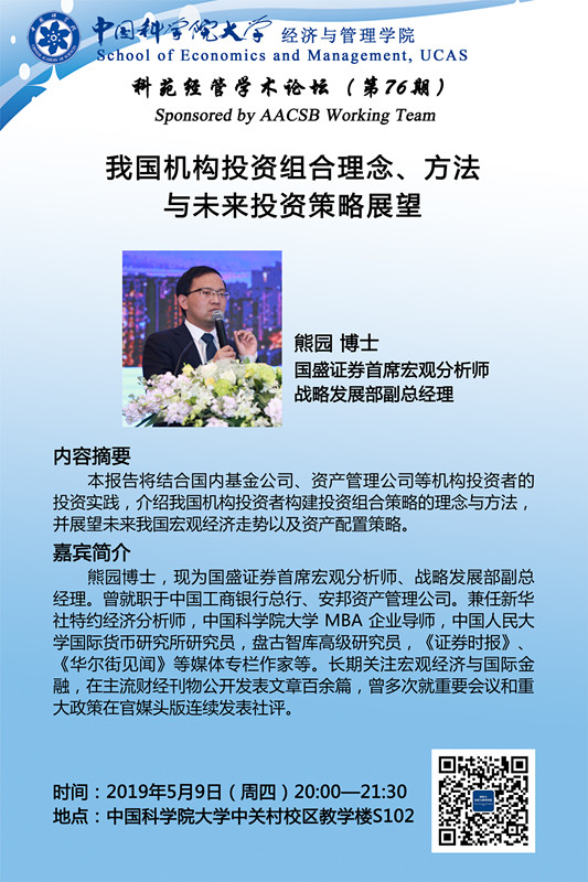 讲座题目:我国机构投资组合理念、方法与未来投资策略展望
