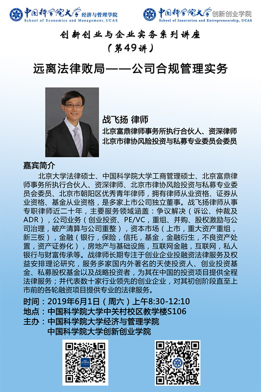 主讲嘉宾:战飞扬律师,北京富鼎律师事务所执行合伙人、资深律师,北京市律协风险投资与私募专业委员会委员