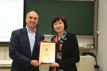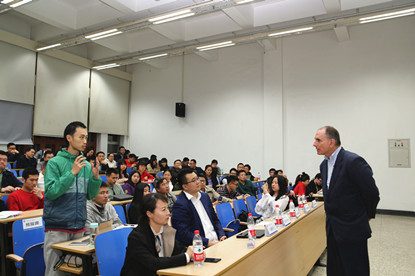 在互动提问环节,John Chisholm先生与现场的听众进行了更有针对性的交流,并对大家提出的问题予以耐心细致的解答。随后,赵红教授代表经济与管理学院为其颁发了“思危大讲堂莅临演讲者纪念牌”。