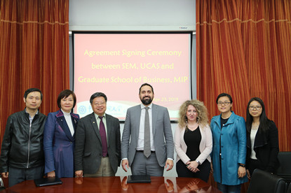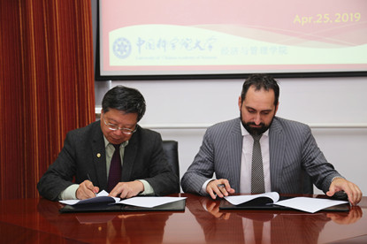 2019年4月25日,意大利米兰理工大学研究生院(MIP Politecnico di Milano – Graduate School of Business)代表团访问中国科学院大学经济与管理学院。经济与管理学院院长汪寿阳教授与意大利米兰理工大学研究生院国际关系主任Lucio Lamberti教授分别代表两个学院正式签署了硕士学位项目合作框架协议。