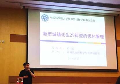 2019年5月17日下午,中国科学院大学经济与管理学院“杰出科学家系列讲座”请到来自中国科学院地理科学与资源研究所的邓祥征研究员,前来进行以“新型城镇化生态转型的优化管理”为主题的讲座。