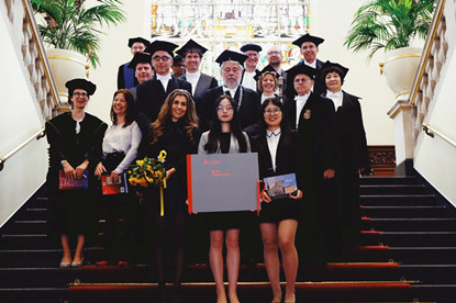 同时,赵红教授也作为答辩委员会成员参加了国科大与格罗宁根大学双博士刘欢同学的毕业答辩。在答辩中,赵红教授与来自美国、比利时等地的九位教授对刘欢同学的博士论文进行了轮流提问。在问答中,刘欢同学信心满满、沉着应对,其精妙的回答不时引得场内听众欢乐的笑声。刘欢在答辩场上的优秀表现最终赢得了所有评委、观众的热烈掌声。答辩主席甚至将这场答辩评为格大经济与管理学院最优秀的答辩之一,答辩委员会成员也对刘欢的科研学术以及思辨能力给予了肯定和高度赞扬。而刘欢只是双博士中的一个例子,国科大与格大合作的三学位和双博士项目到目前已经培养了多位优秀的科研人员。