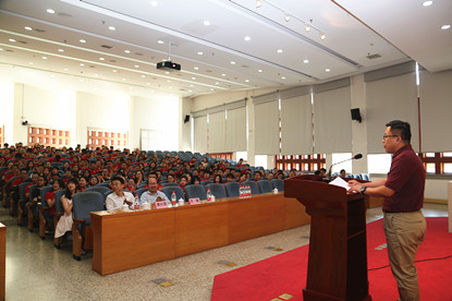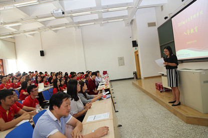 最后,MBA教育管理中心主任许健向同学们介绍了未来两年的学习生涯概貌、MBA教学管理制度及近期主要活动。许老师的发言晓之以理,动之以情,从学习到生活,从上课到论文,从选课到职业规划,方方面面,非常详尽。在许老师的感染下,现场气氛十分热烈,其诙谐幽默的语言赢得了同学们阵阵掌声。