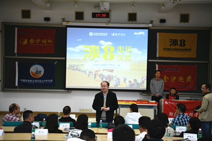 2019年4月14日17点30分,国科大MBA户外协会联合国科大金沙跑团、国科大MBA联合会在中关村教学楼S102隆重举办中国科学院大学“沙八”出征仪式暨誓师大会,为月底即将拉开序幕的第八届亚太地区商学院沙漠挑战赛(简称“沙八”)隆重地敲响了战鼓。国科大MBA中心许健主任、彭赓副教授、姜雪老师及沙8全体队员参加了本次大会,也得到了亚沙组委会的大力支持,亚沙组委会副会长唐凡,亚沙组委会秘书处王亚楠亲自到场支持。同时大会还邀请了国科大沙8的友情赞助代表、历届亚沙赛队员和北大国发、人大、北航、中传、社科院、交大、北邮、和君商学院等北京地区各高校亚沙领队参加。