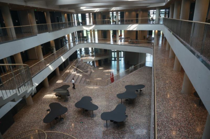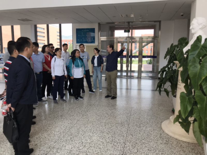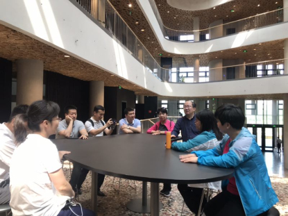 随后大家来到中国科学院大学中丹学院,参观了学院教学楼建设及使用等情况。中丹学院是中国科学院大学中外合作办学机构,承担着中丹科研教育中心教育功能。这里现有学生200多名,教学环境、设施可以堪称国内一流,独特的教学模式、轻松开放式的教学氛围,让大家感受了不一样的学术研究氛围,大家赞叹不已。